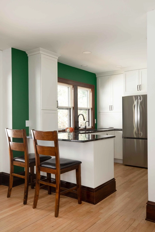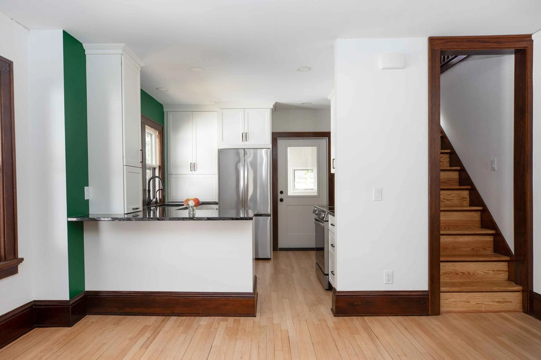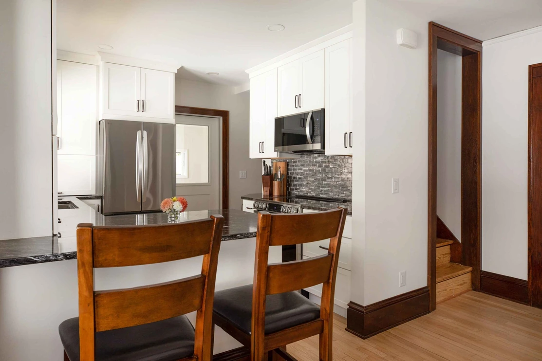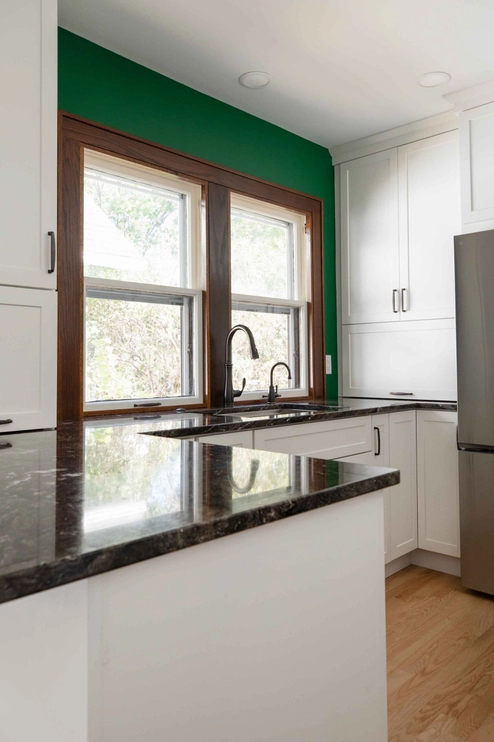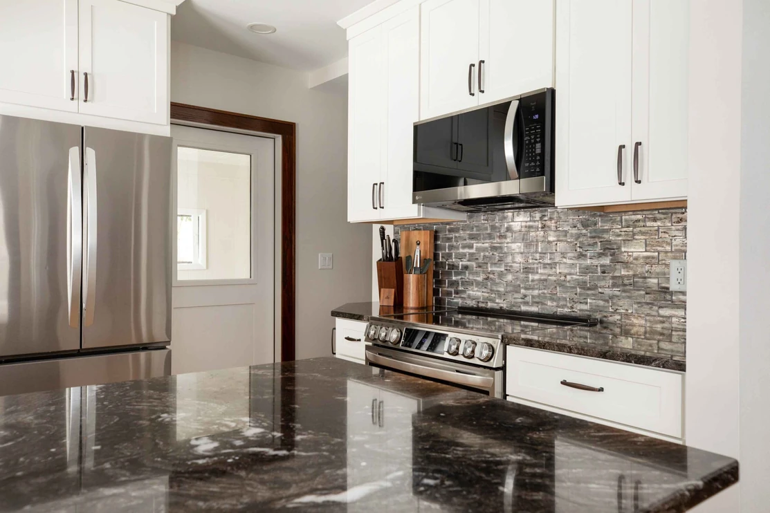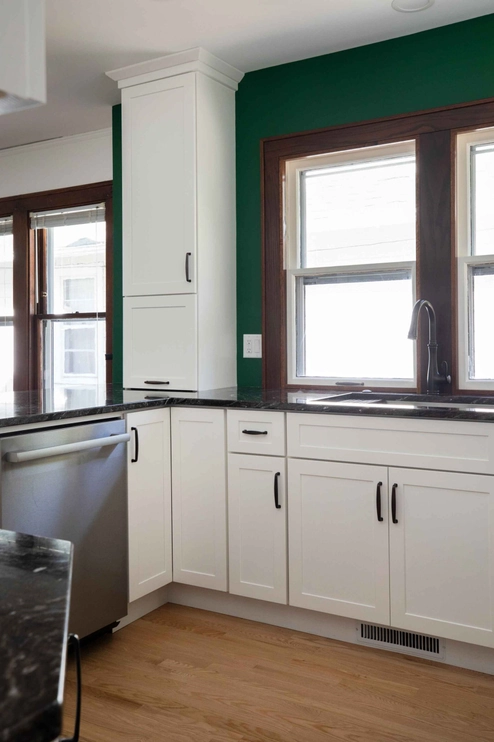 This kitchen remodel beautifully combines style with smart functionality, making the most of every inch! By removing some walls, we transformed a once cramped kitchen into an inviting, open area. Custom storage was a top priority, so we worked with Showplace cabinetry to provide creative storage options while maintaining a modern atmosphere. The stunning granite countertops add both elegance and durability, creating a sophisticated focal point. A standout feature is the appliance garage next to the fridge, cleverly designed to keep countertops tidy and clutter-free. Every detail was thoughtfully chosen to craft a warm, welcoming kitchen that’s as functional as it is beautiful.