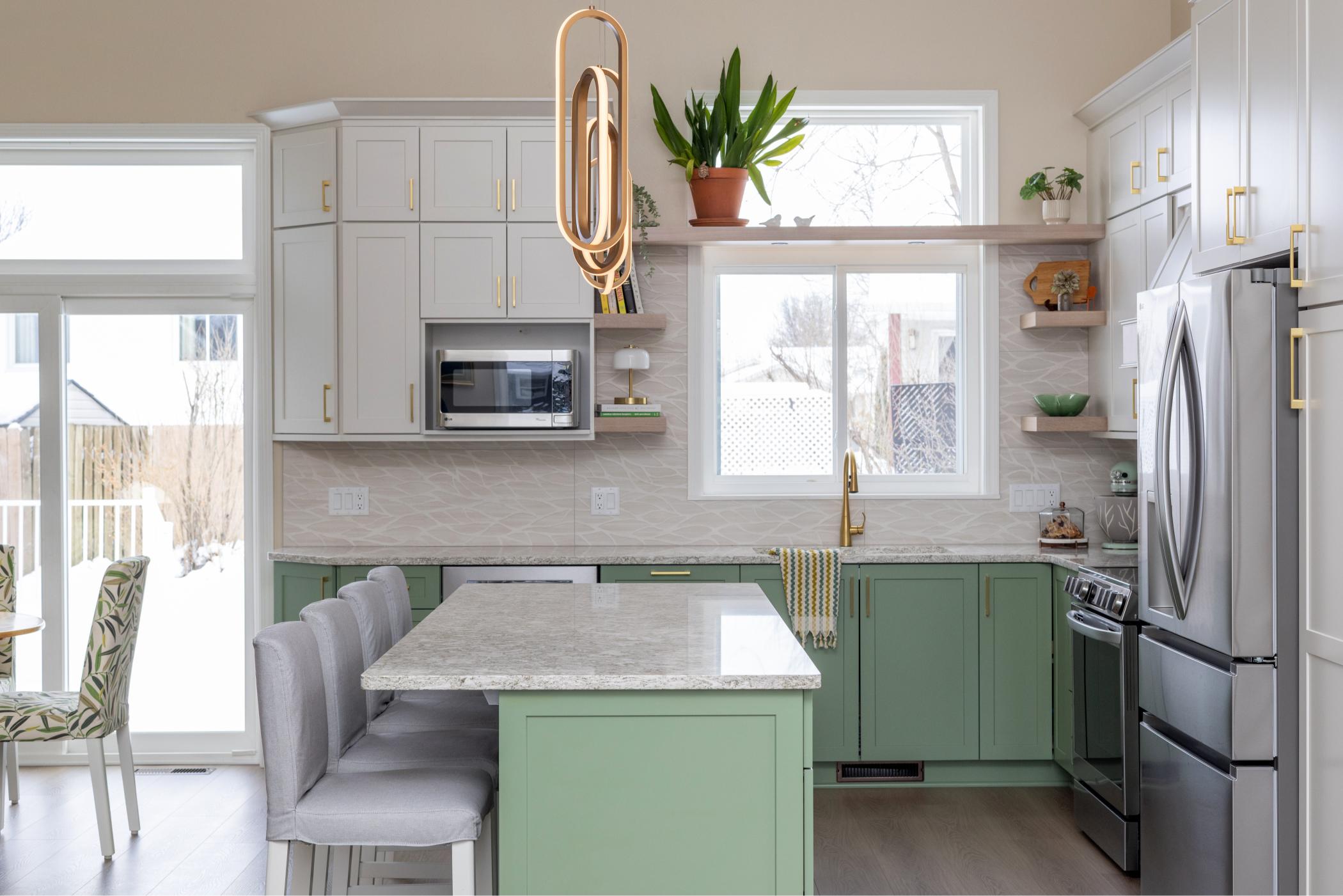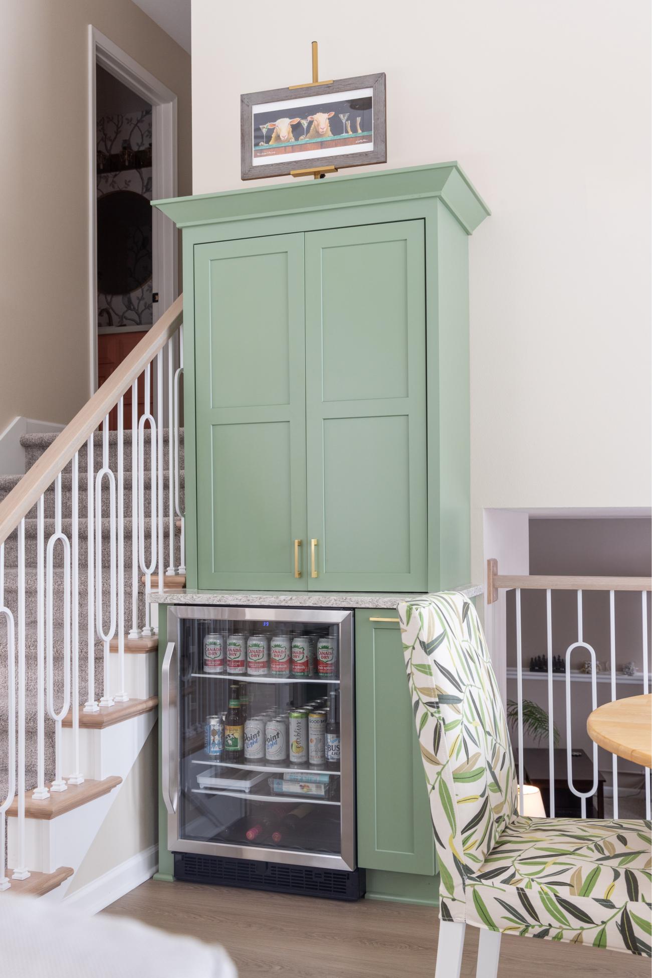 This kitchen remodel was guided by how the homeowners wanted to experience their space every day- curated, connected, and calm. The original layout was closed off from the rest of the home, so the design focused on bringing in more natural light and improving functionality while still feeling warm and grounded. Custom green cabinetry adds an organic presence that ties the kitchen into the surrounding spaces. And because the homeowners love to entertain, a thoughtfully designed bar was added to the dining area- giving guests a place to help themselves while conversation and preparation continue to flow with ease.