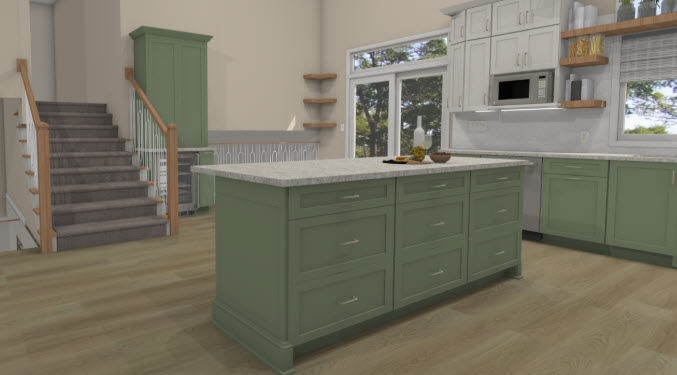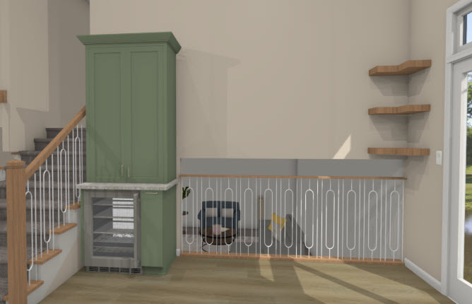 Moving to the final design and material selection process with Margaret was an enjoyable time for us. It took a few trips to the Stoughton office to finalize everything, but it was great to build a mood board of materials with options available in the office. There was absolutely no pressure to move to more expensive materials. We were even warned (or congratulated if we reduced the price) if a material would change the good/better/best column for its category from our original expectations. At the end of our material selection, we received a breakdown of things that exceeded the original price ranges (custom cabinet colors, higher quality LVP, adding a staircase to the changes) and signed to get our project scheduled.